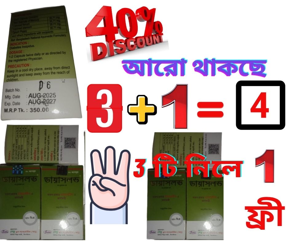 ডায়াবেটিসের ন্যাচারাল ঔষধ ( 3 টি+1টি ফ্রি)= মোট 4 টি